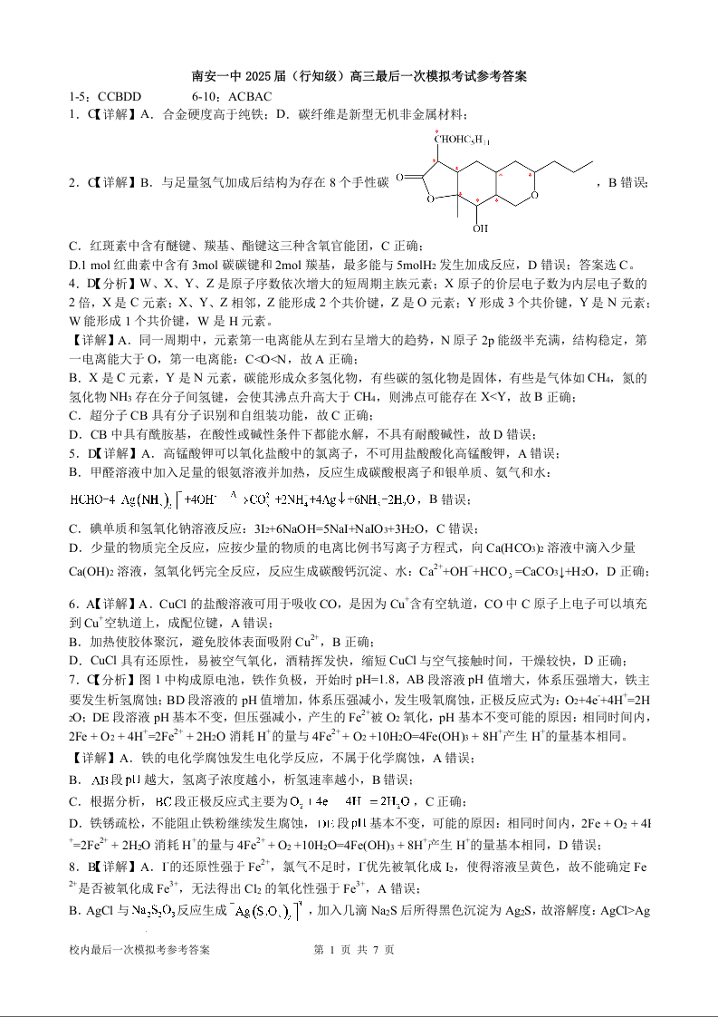 南安一中2025届(行知级)高三最后一次模拟考试 化学答案.docx