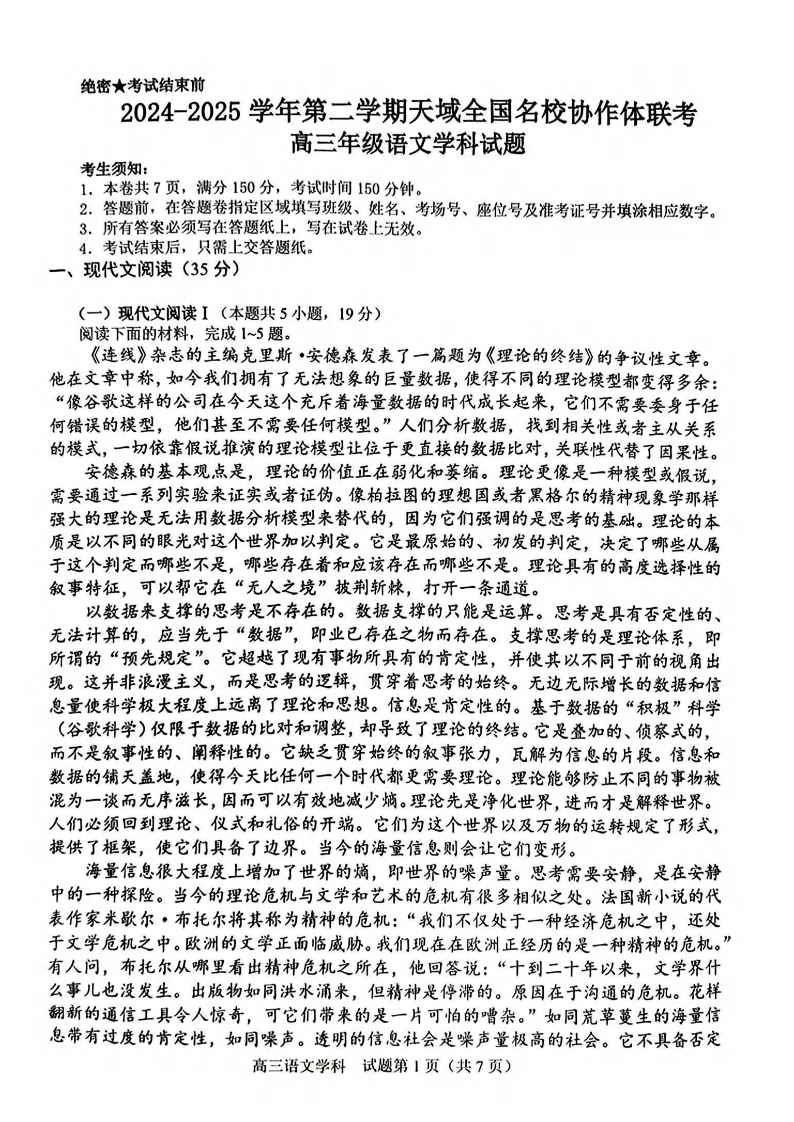 2024-2025学年第二学期天域全国名校协作体联考 语文.pdf
