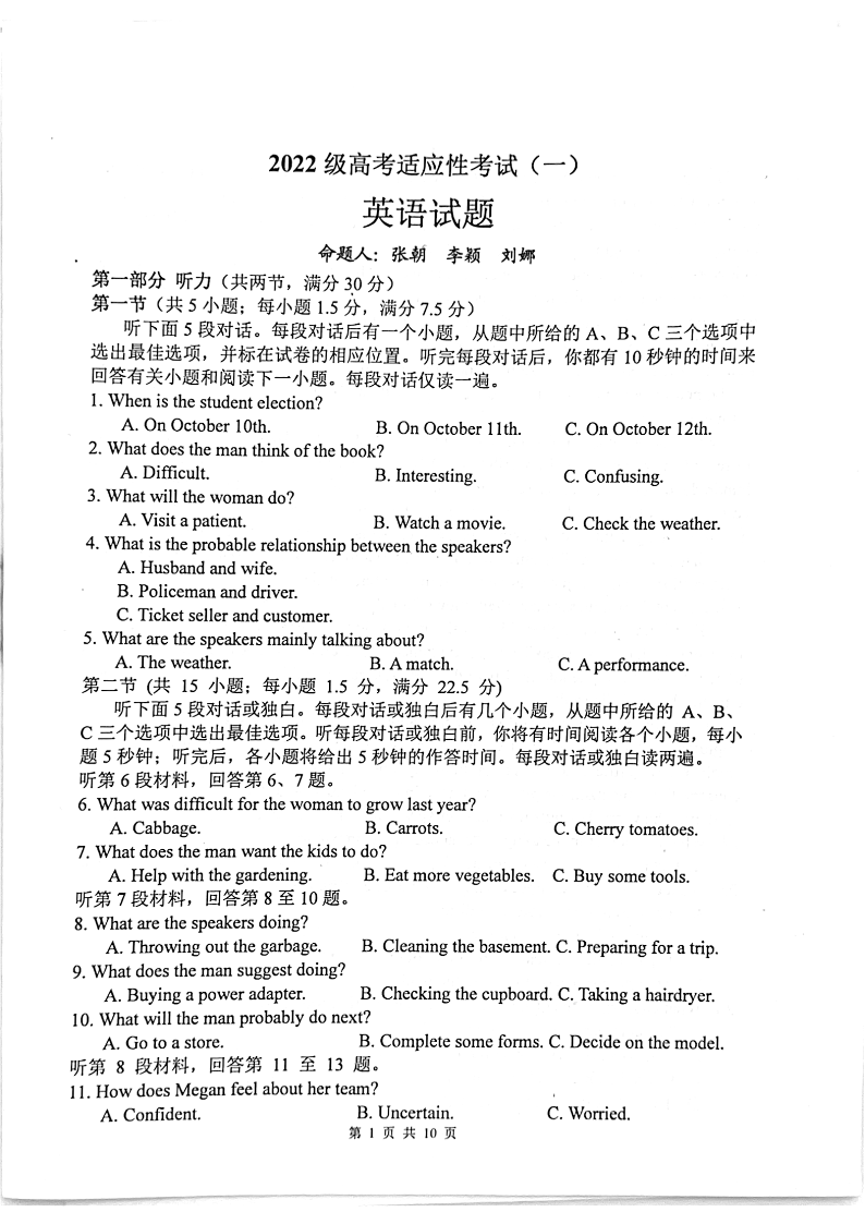 四川省绵阳中学2025届高三下学期高考适应性考试(一)英语(含答案).pdf
