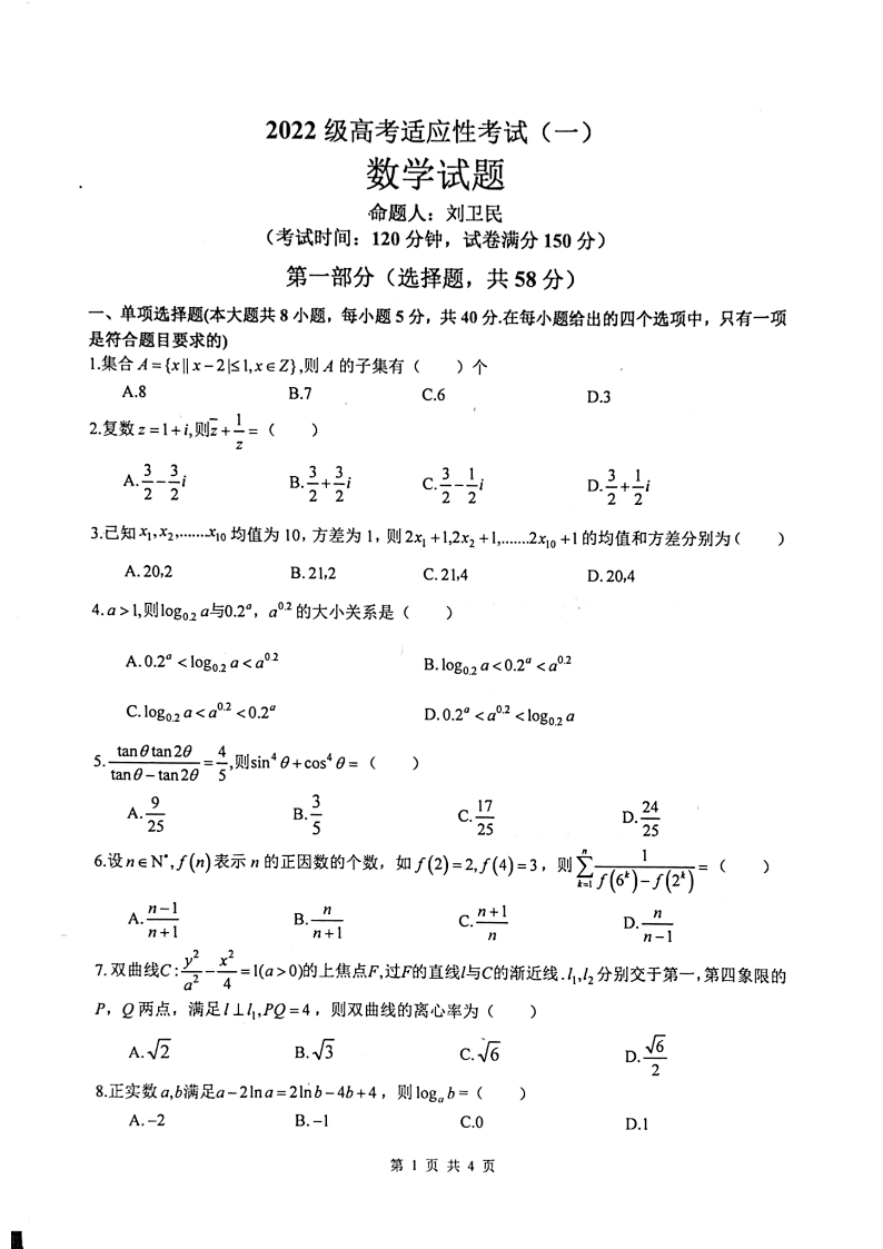 四川省绵阳中学2025届高三下学期高考适应性考试(一)数学(含答案).pdf