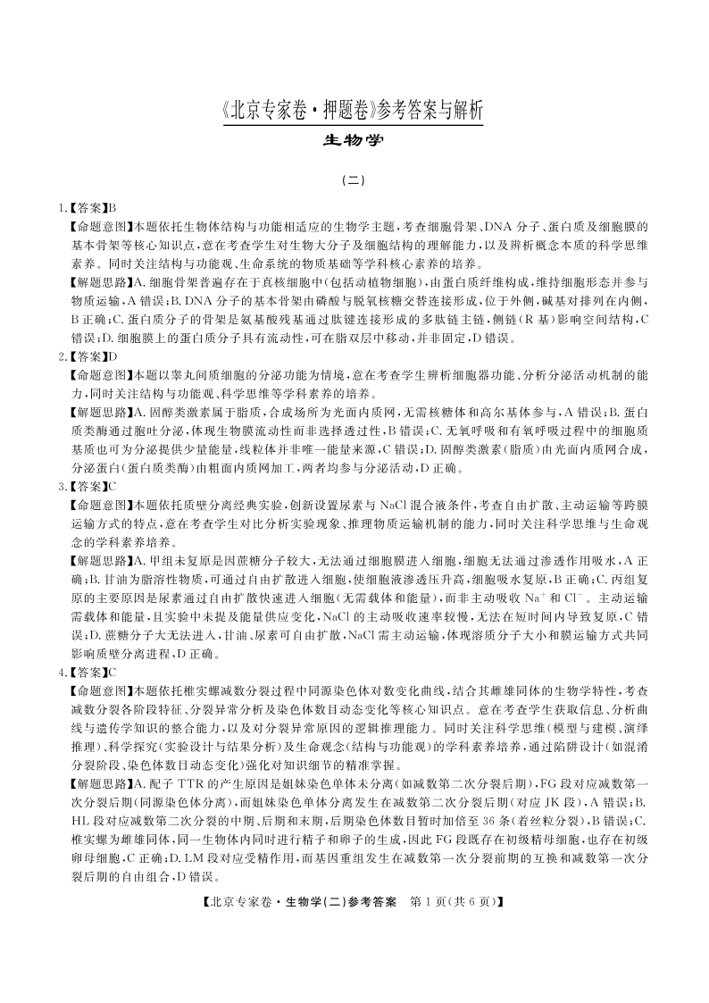 北京专家卷·押题卷(二)生物答案.pdf