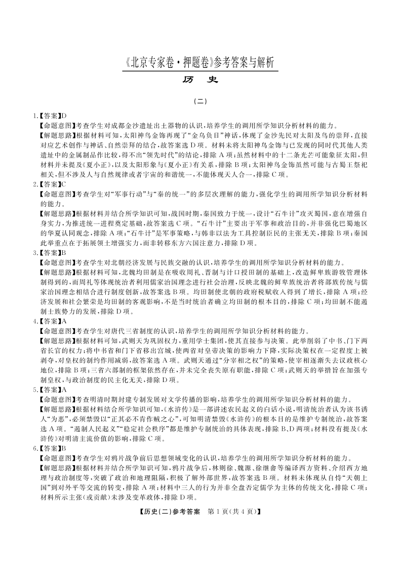 北京专家卷·押题卷(二)历史答案.pdf
