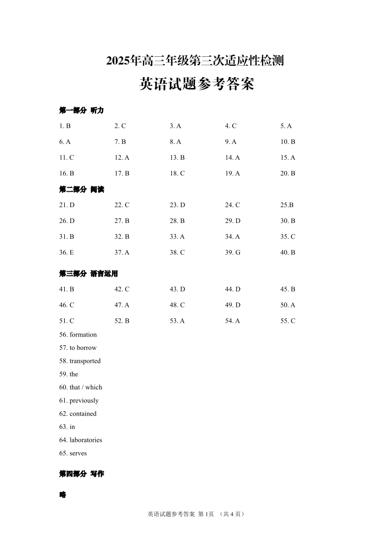 山东省青岛市2025年高三年级第三次适应性检测 英语答案.pdf