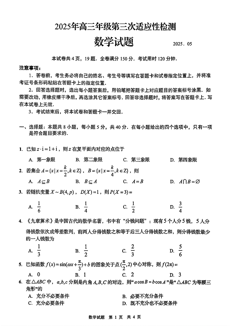 山东省青岛市2025年高三年级第三次适应性检测 数学.pdf