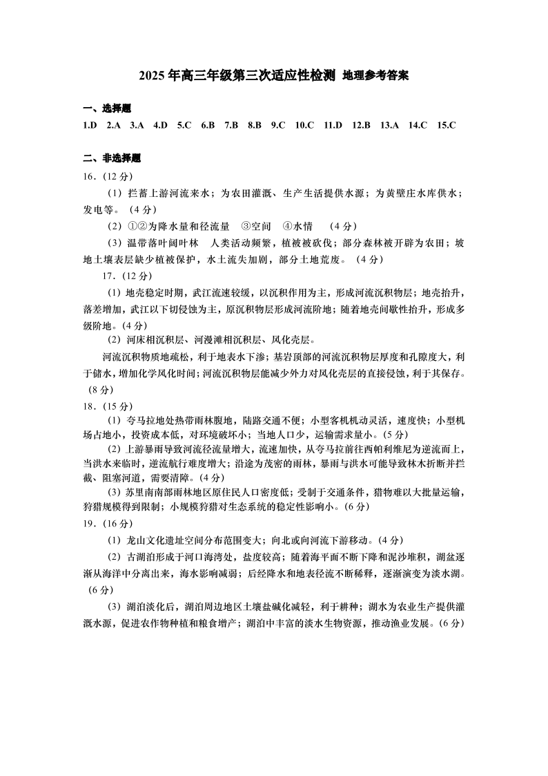 山东省青岛市2025年高三年级第三次适应性检测 地理答案.pdf