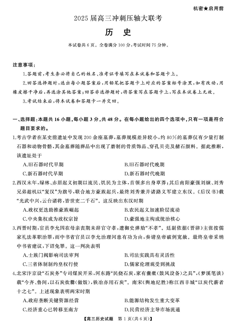 2025届湖南高三天壹冲刺压轴大联考 历史试题(含答案).pdf
