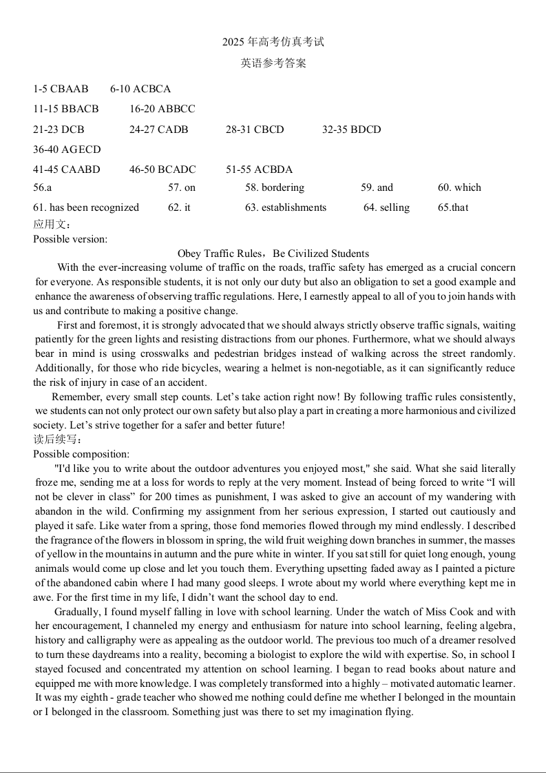 2025年高考仿真考试 英语答案.docx