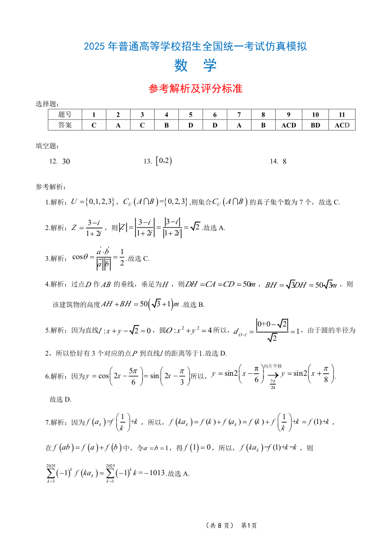 2025年高考仿真考试 数学答案.pdf