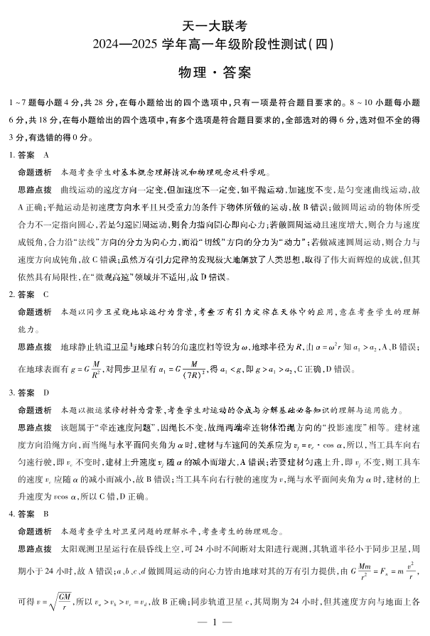 物理高一四联答案.pdf