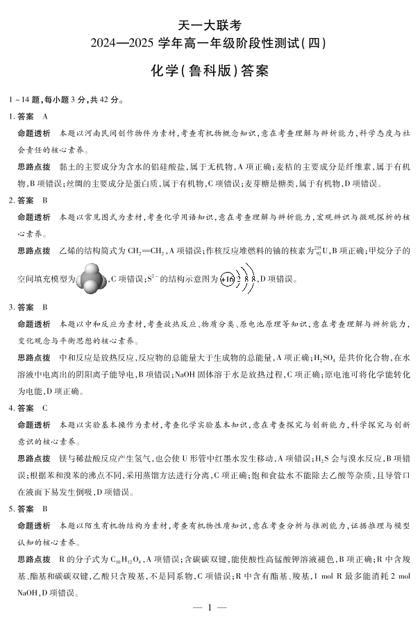 化学鲁科版高一四联答案.pdf