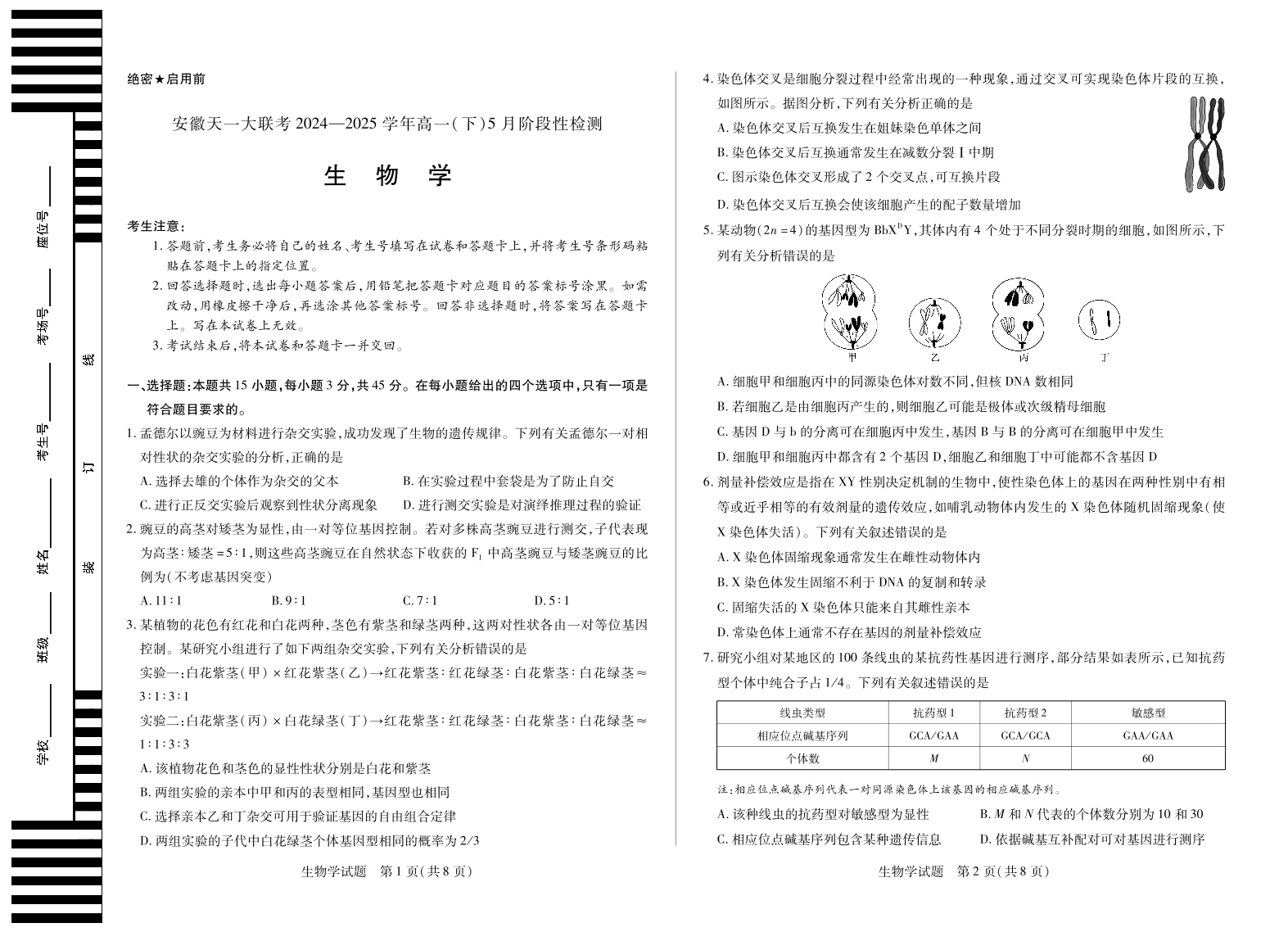 生物学安徽高一下5月检测试卷.pdf