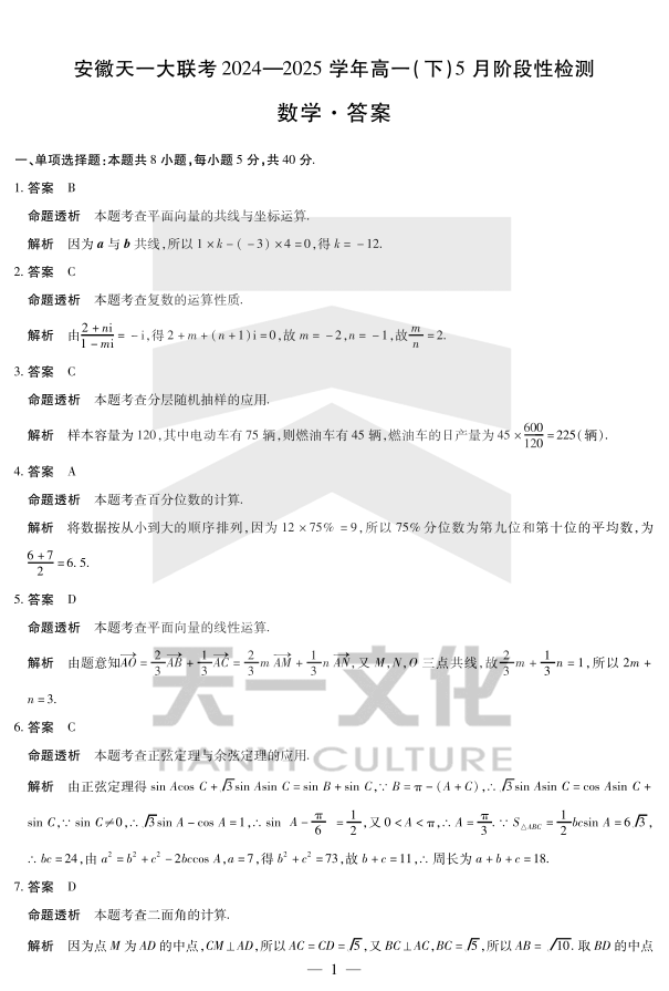 数学-安徽高一下5月检测答案.pdf