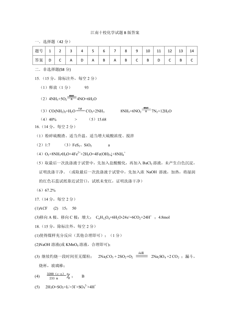 安徽省“江南十校”2024-2025学年高一年级5月份阶段联考 化学B版答案.pdf