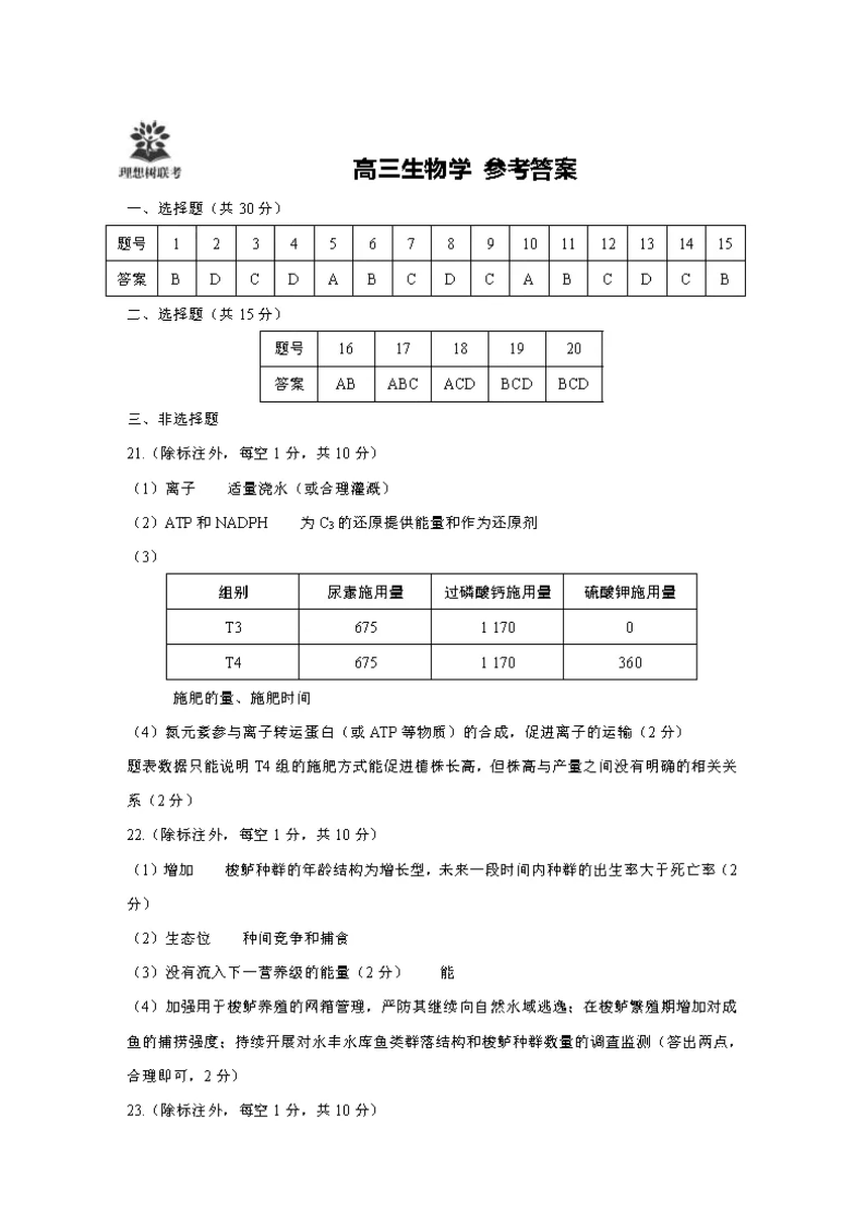 东北三省精准教学联盟2025届高三5月联考 生物答案.pdf