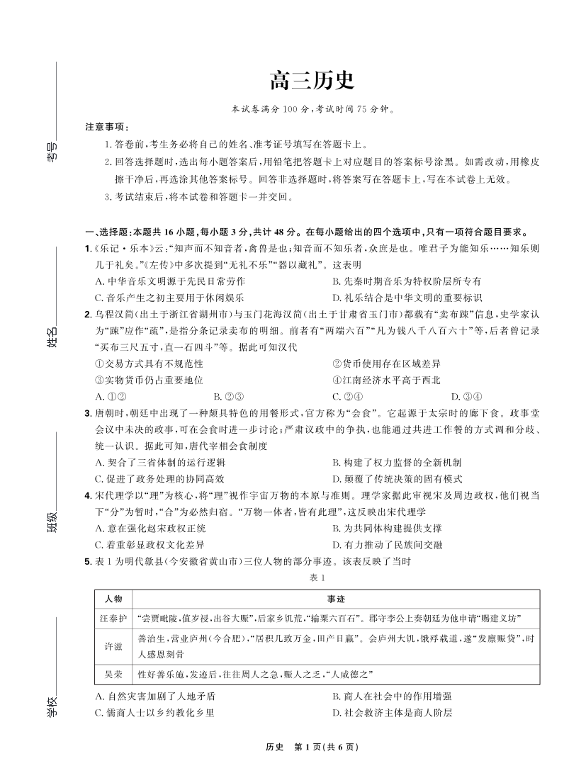 东北三省精准教学联盟2025届高三5月联考 历史.pdf
