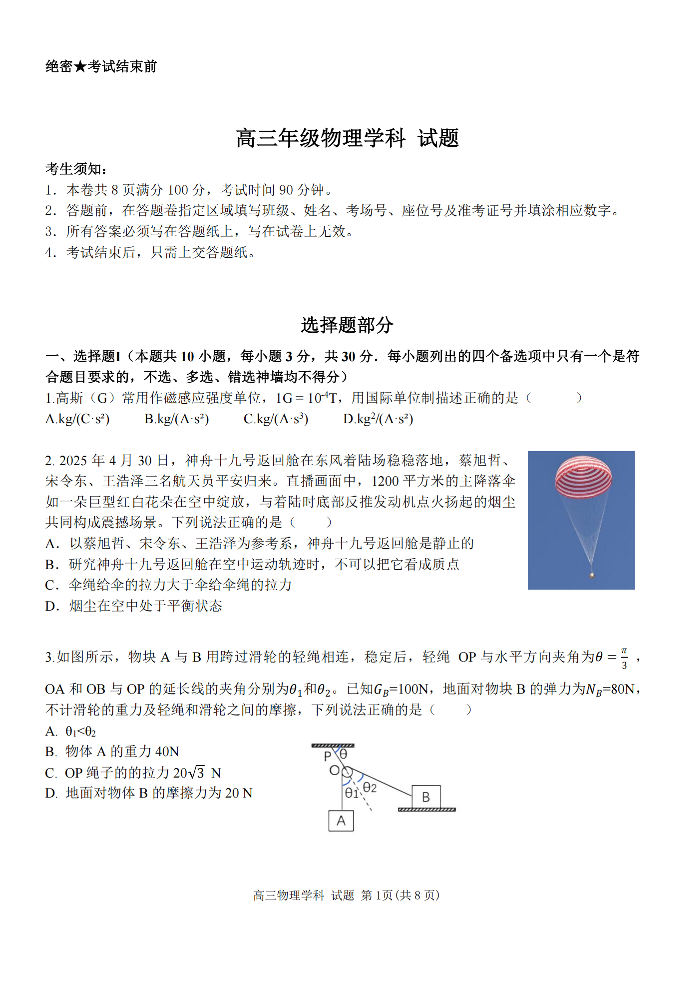 浙江省北斗星盟2025年5月高三模拟考试 物理.pdf