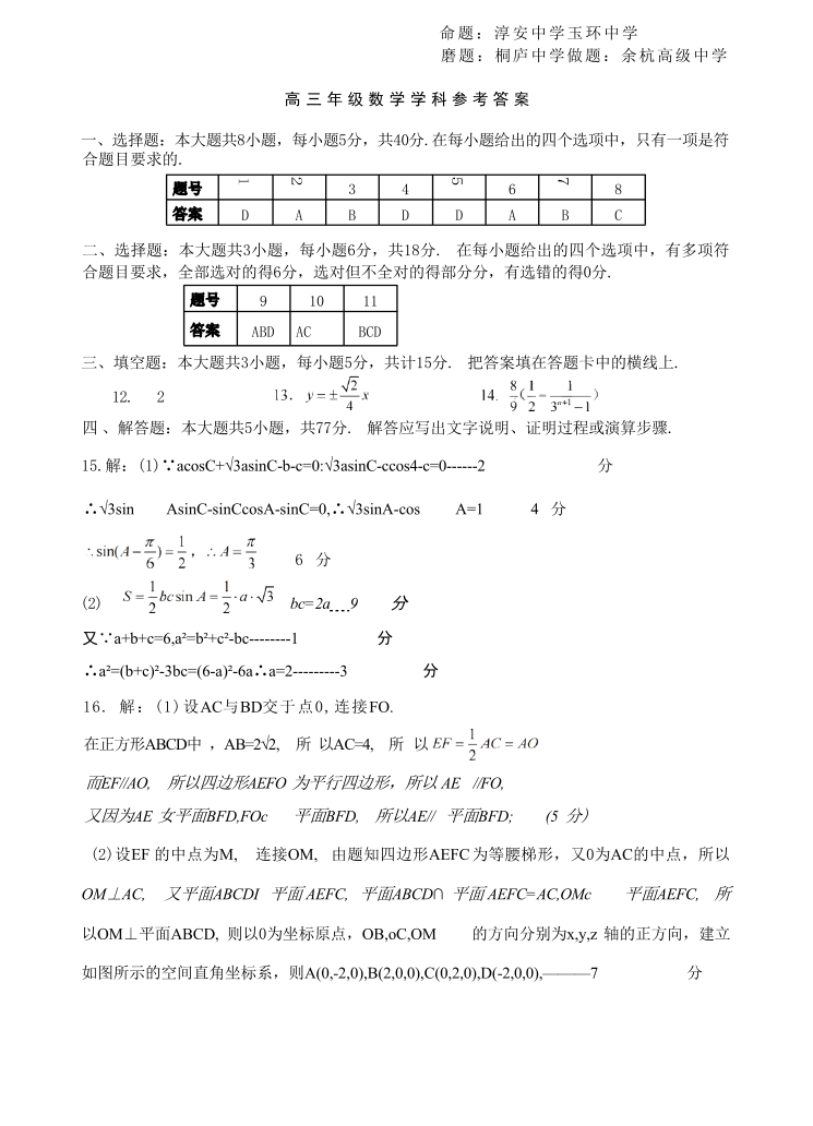 浙江省北斗星盟2025年5月高三模拟考试 数学答案.pdf