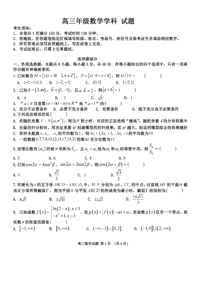 浙江省北斗星盟2025年5月高三模拟考试 数学.pdf