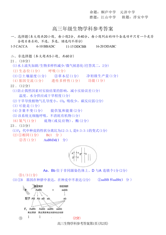 浙江省北斗星盟2025年5月高三模拟考试 生物答案.pdf