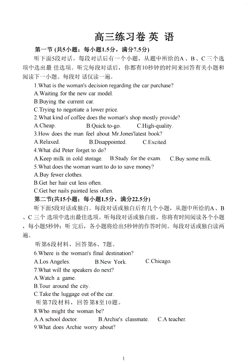 南通四模5月高三练习卷 英语试题(含答案).pdf