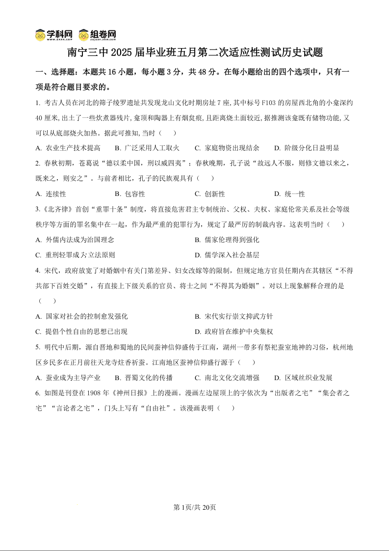 南宁三中2025届毕业班五月第二次适应性测试 历史(含答案).docx
