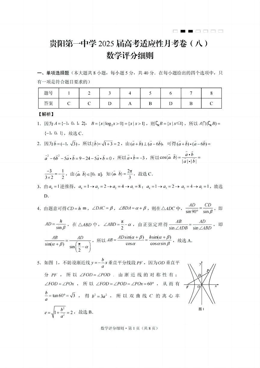 贵州省贵阳第一中学2025届高考适应性月考卷(八)数学答案.pdf