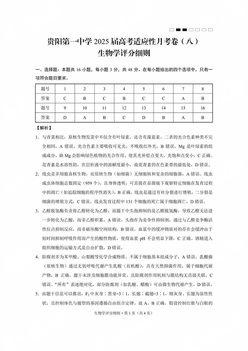 贵州省贵阳第一中学2025届高考适应性月考卷(八)生物答案.pdf