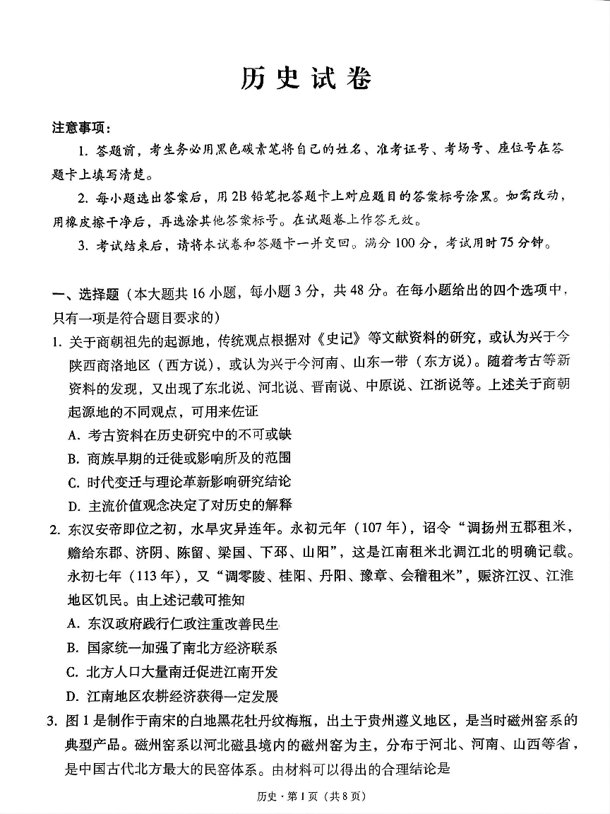 贵州省贵阳第一中学2025届高考适应性月考卷(八)历史.pdf