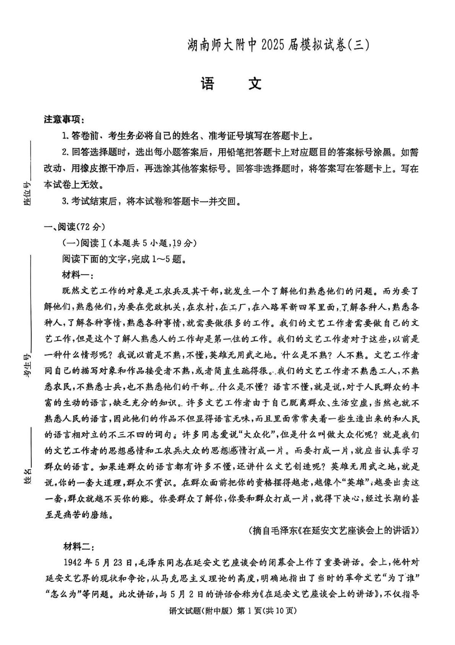 湖南师大附中2025届模拟试卷(三)-语文.pdf