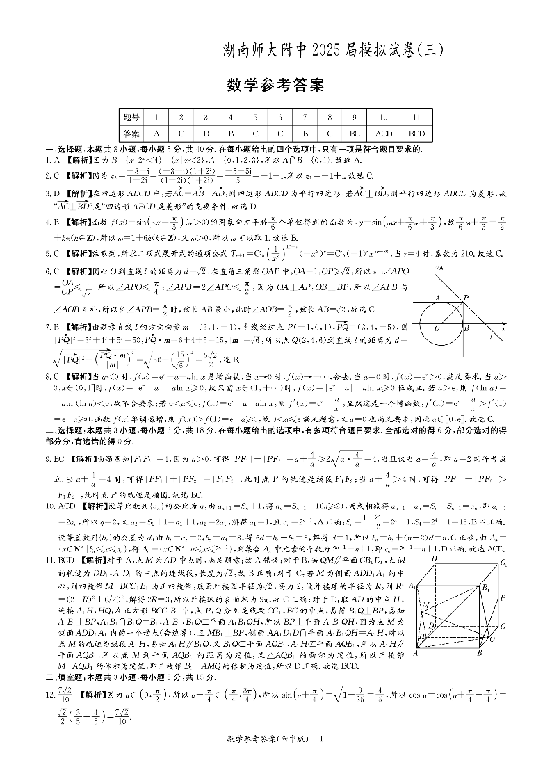 湖南师大附中2025届模拟试卷(三)-数学答案.pdf