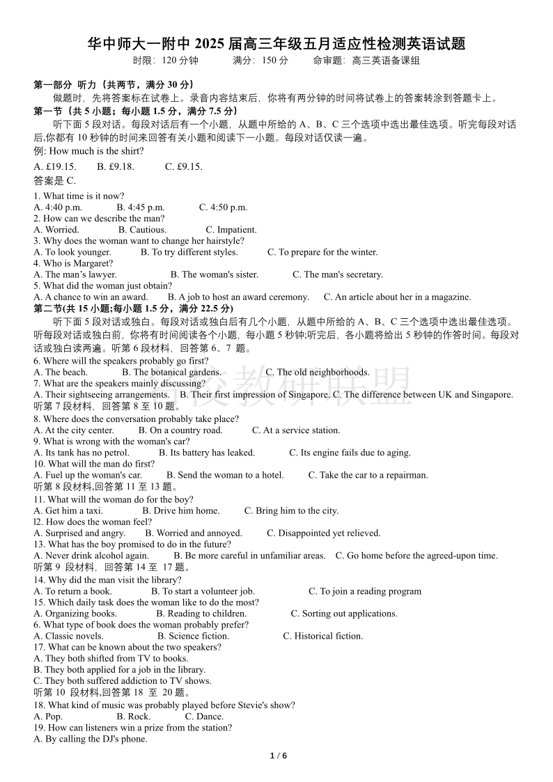 华师一附中五月适应性检测 英语.pdf
