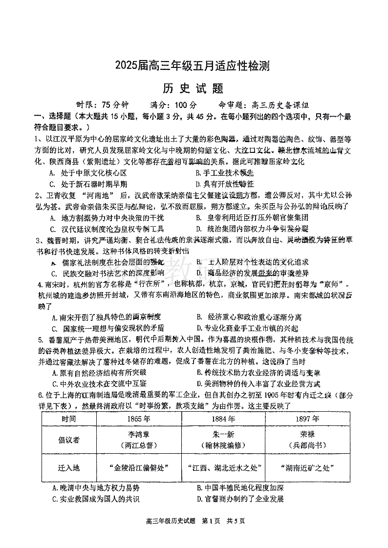 华师一附中五月适应性检测 历史.pdf