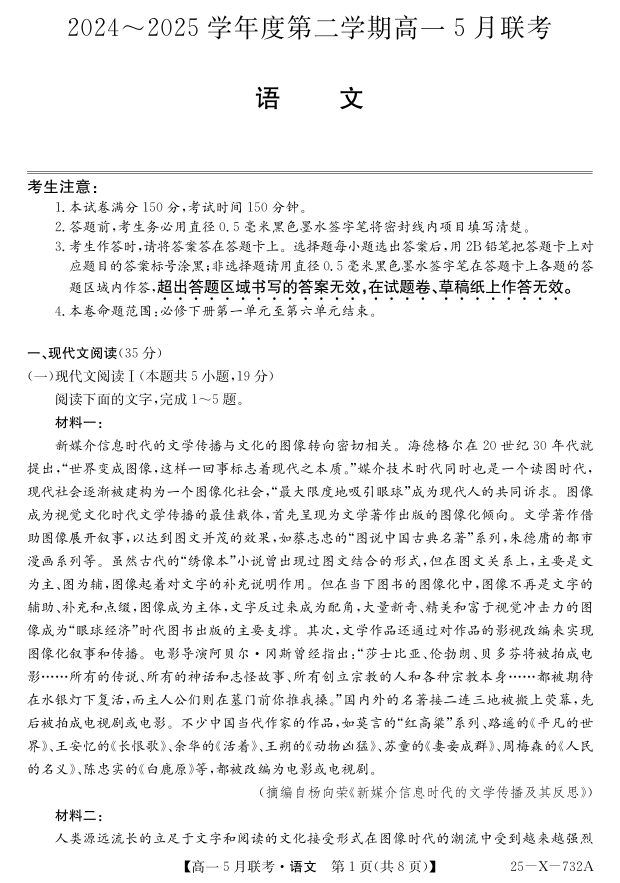 安徽省县中联盟2024-2025学年高一下学期5月联考 语文.pdf