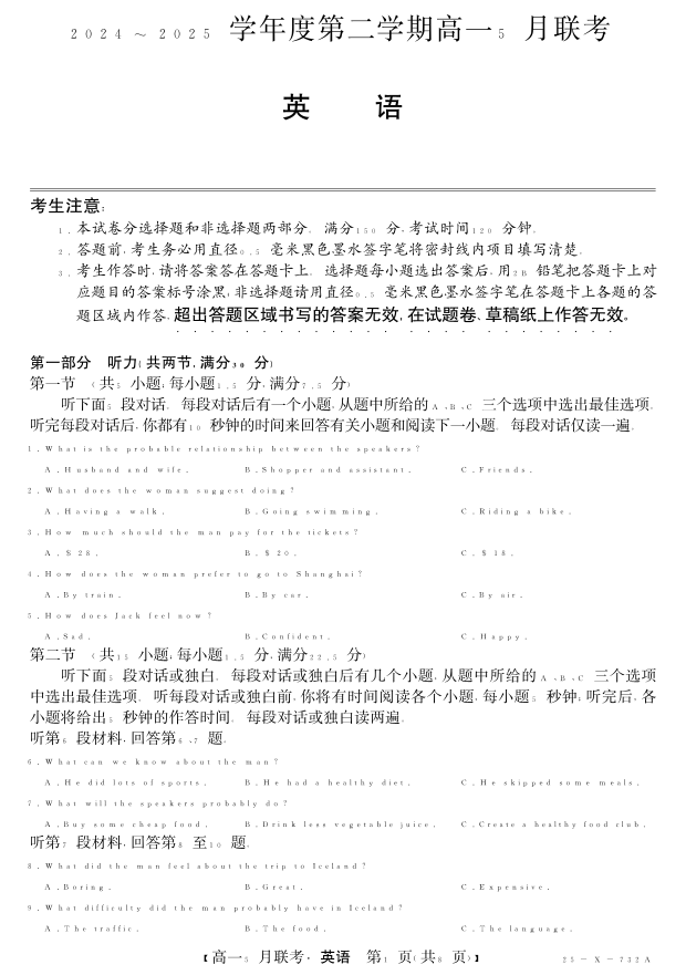 安徽省县中联盟2024-2025学年高一下学期5月联考 英语.pdf
