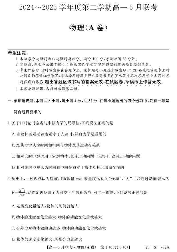 安徽省县中联盟2024-2025学年高一下学期5月联考 物理.pdf