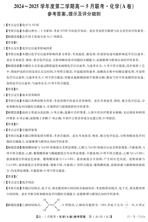 安徽省县中联盟2024-2025学年高一下学期5月联考 化学答案.pdf