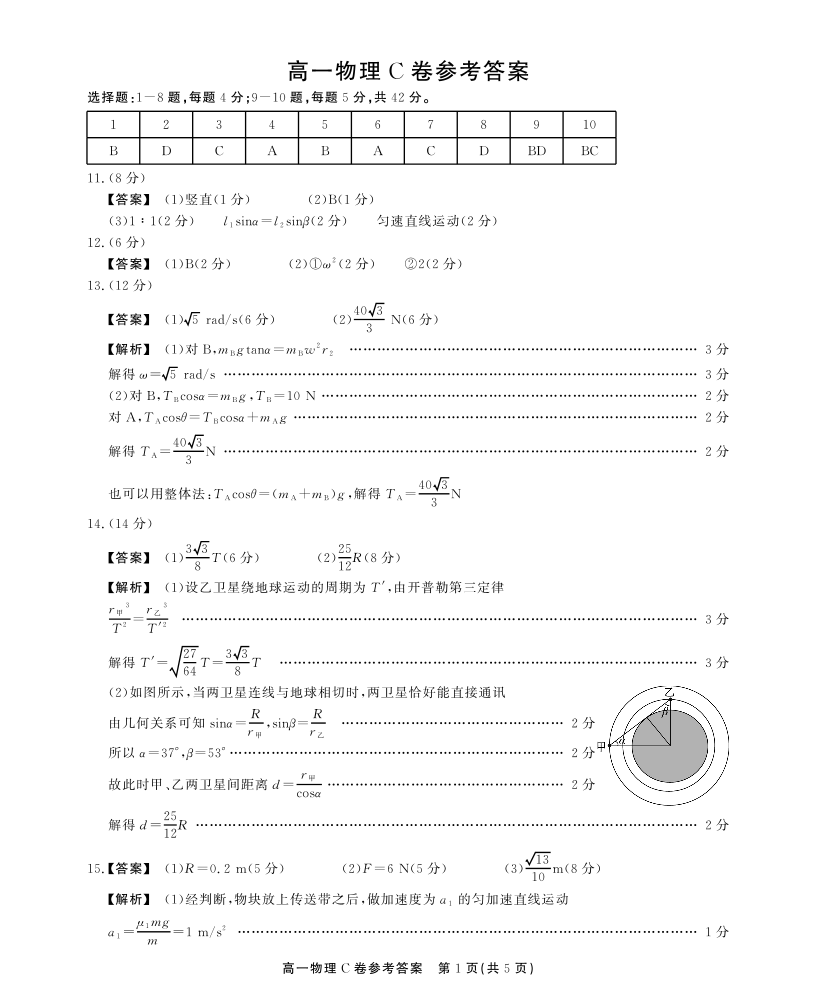 安徽省鼎尖名校高一5月阶段性检测 物理C卷答案.pdf