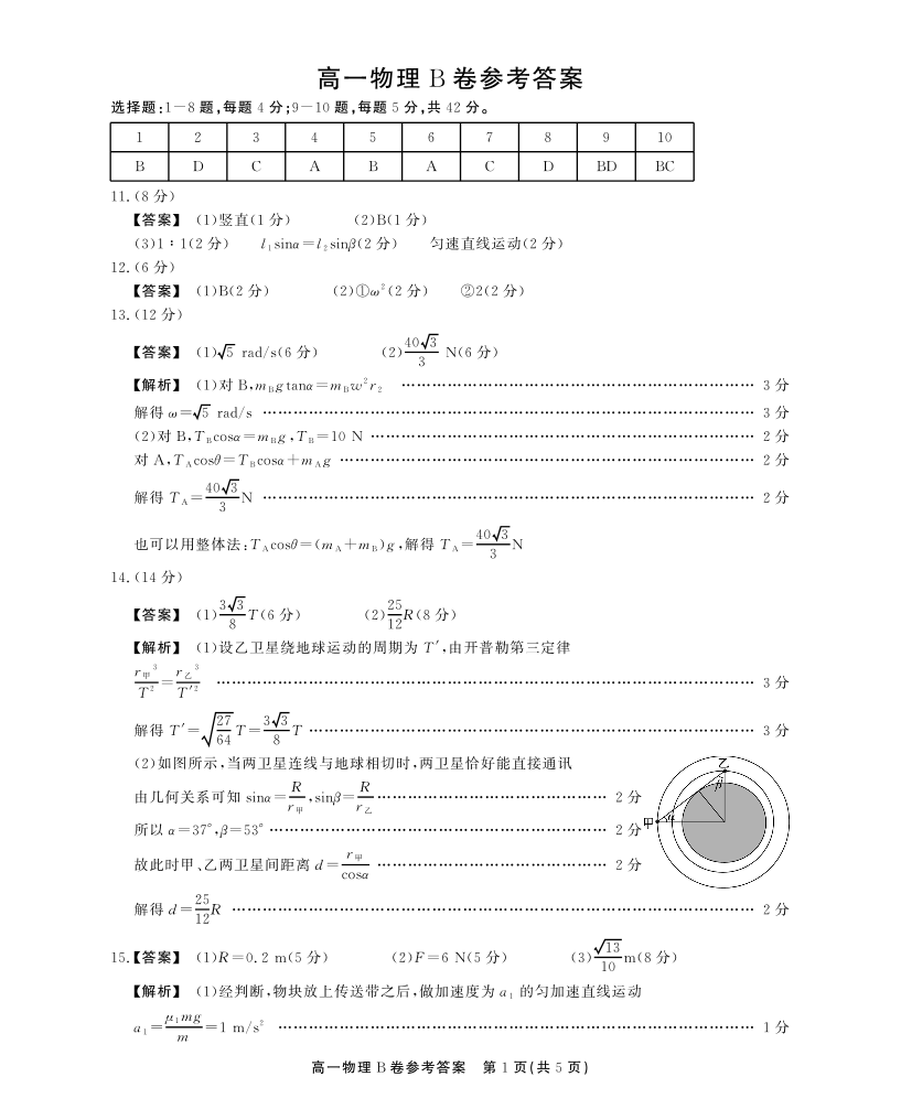 安徽省鼎尖名校高一5月阶段性检测 物理B卷答案.pdf