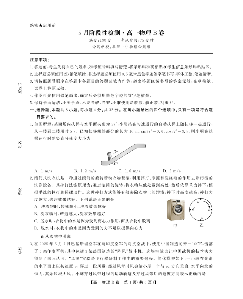 安徽省鼎尖名校高一5月阶段性检测 物理B卷.pdf