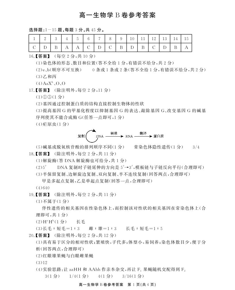 安徽省鼎尖名校高一5月阶段性检测 生物学B卷答案.pdf