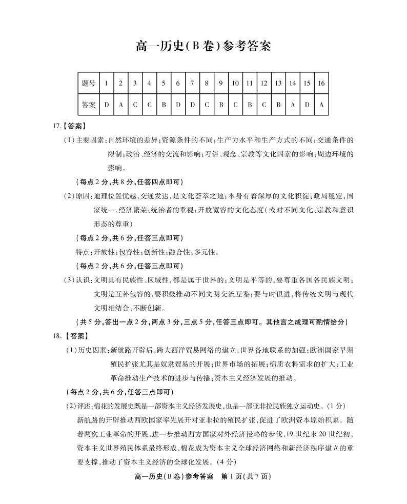 安徽省鼎尖名校高一5月阶段性检测 历史B卷答案.pdf