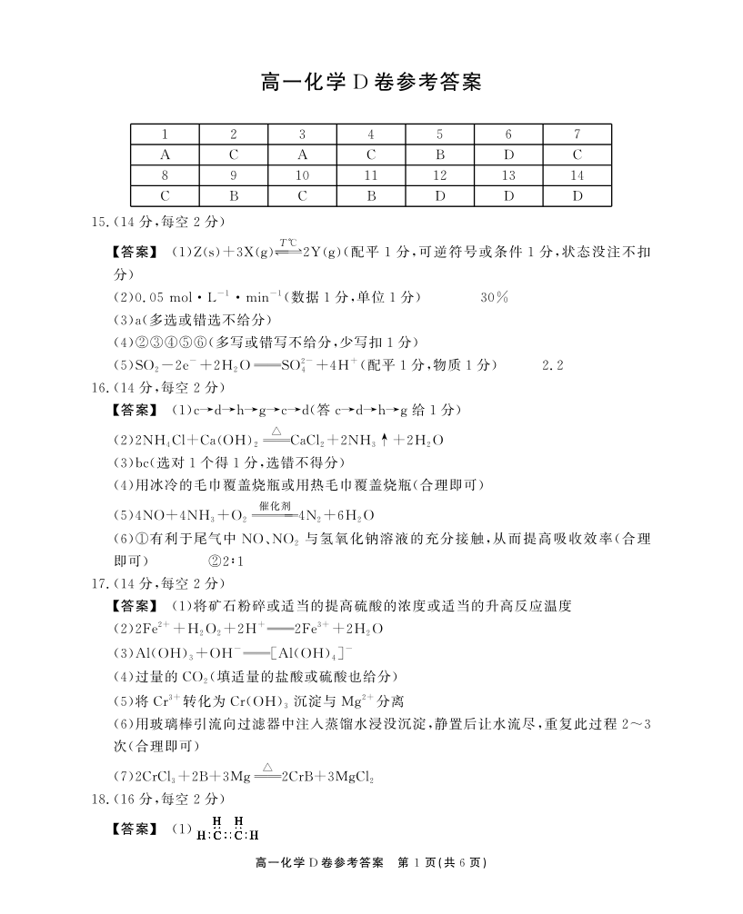 安徽省鼎尖名校高一5月阶段性检测 化学D卷答案.pdf