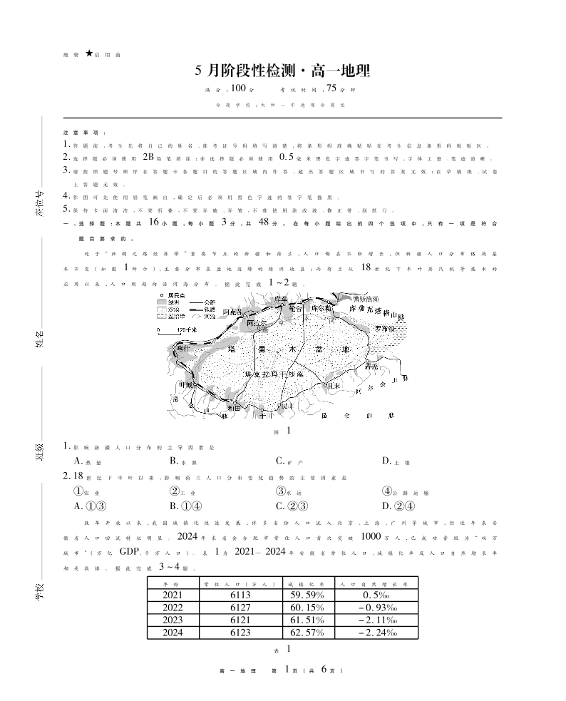 安徽省鼎尖名校高一5月阶段性检测 地理.pdf