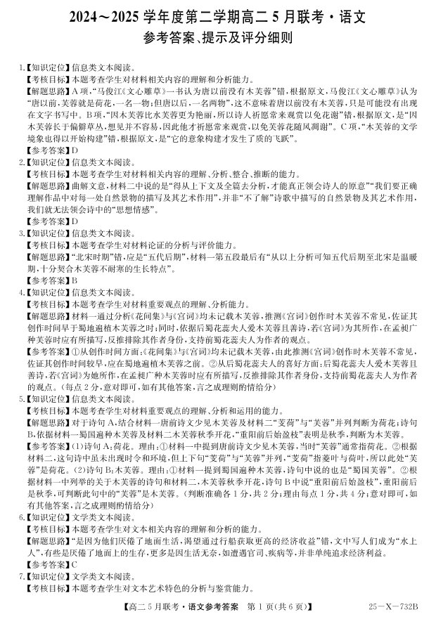 安徽省县中联盟2024-2025学年高二下学期5月联考 语文答案.pdf
