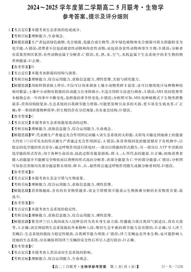安徽省县中联盟2024-2025学年高二下学期5月联考 生物答案.pdf