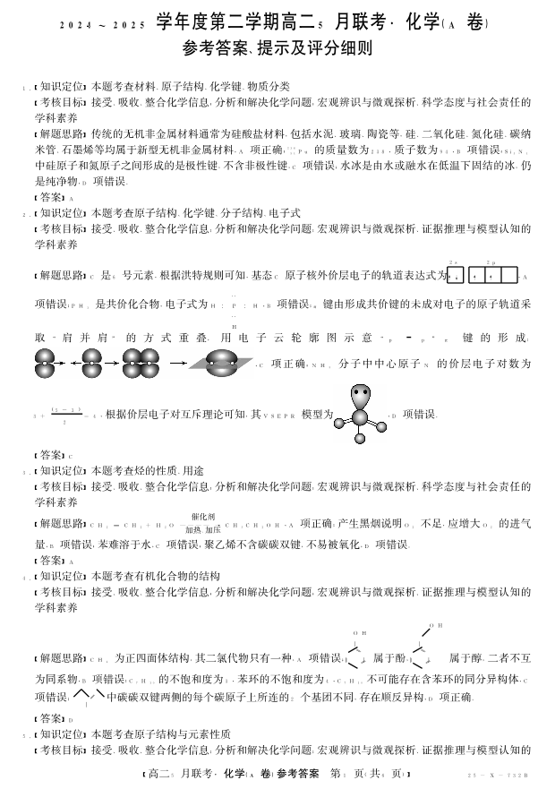 安徽省县中联盟2024-2025学年高二下学期5月联考 化学答案.pdf