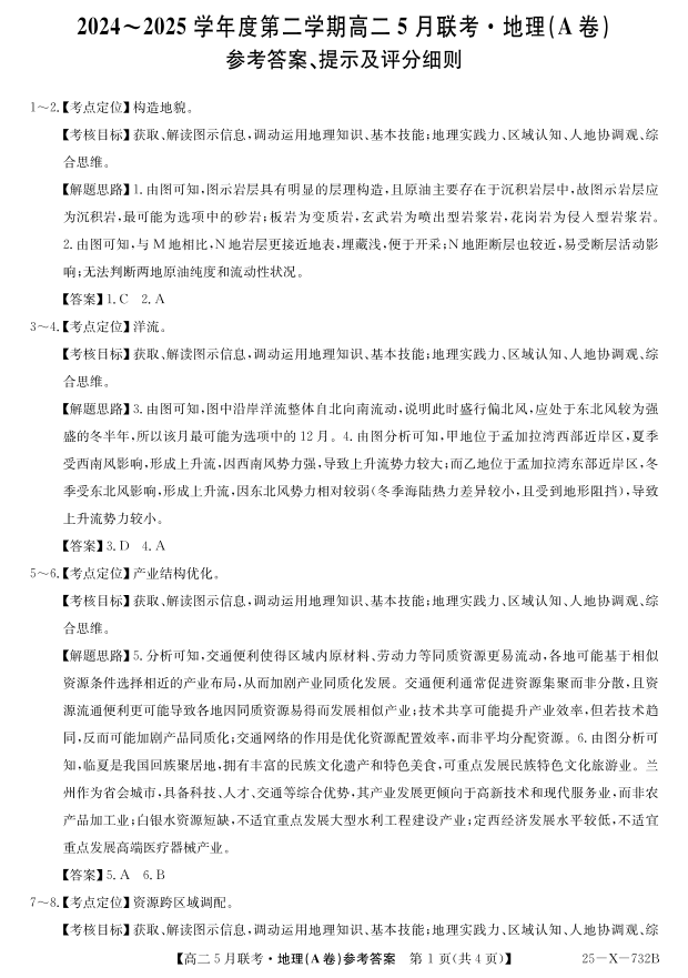 安徽省县中联盟2024-2025学年高二下学期5月联考 地理答案.pdf