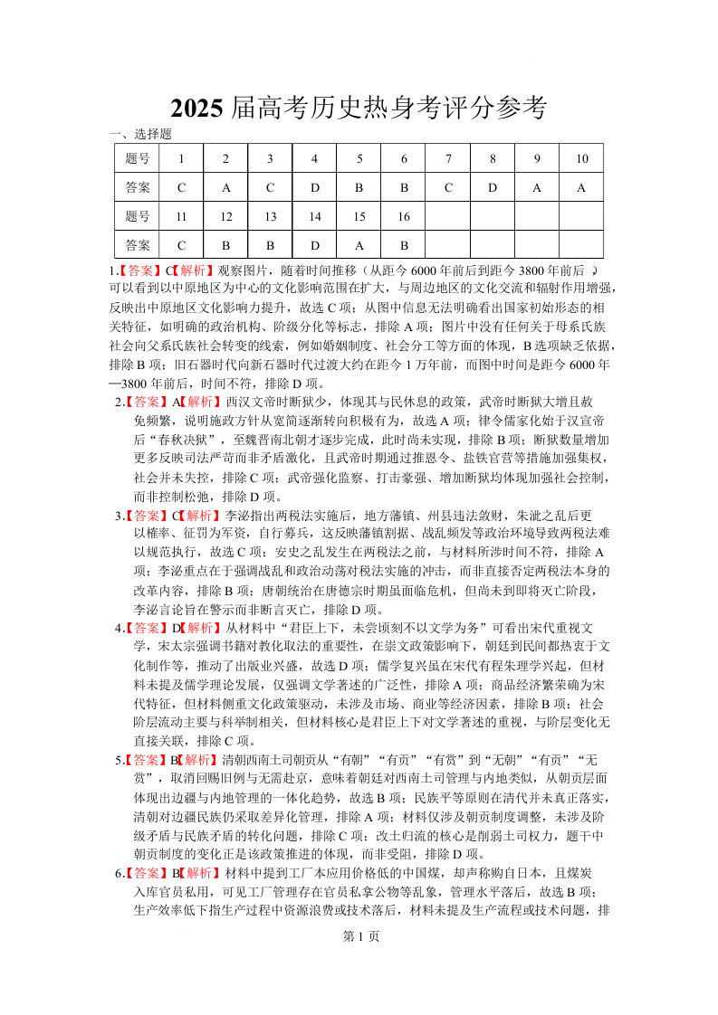 柳州高级中学2025届高三下学期第十六次阶段性测试 历史答案.docx