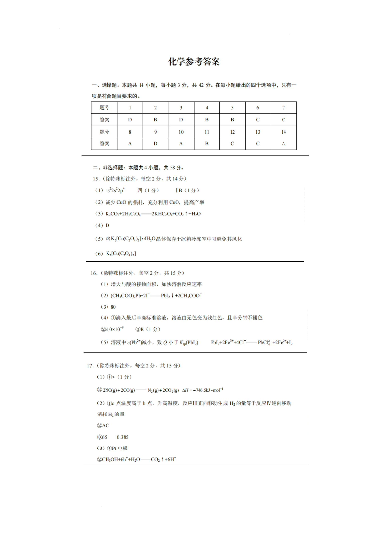 重庆一中高2025届高考适应性考试最后一卷 化学答案.docx