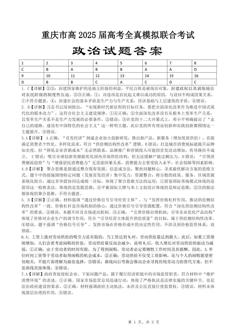 重庆育才中学全真模拟 政治答案.pdf